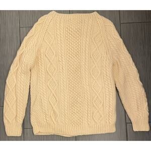 Pure Wool Purple Heather Handknit Fisherman Sweater Ivory Large Ireland. Condition is Pre-owned - Good. Shipped with USPS Ground Advantage.
