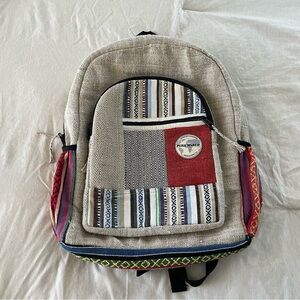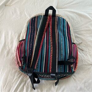 Stylish backpack with a mix of patterns. Features a front pocket and side accents. Perfect for everyday use. In good condition as pictured.