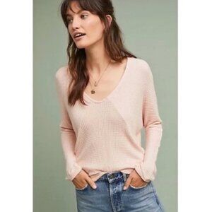 Pure and Good by Anthropologie Sweater Womens Medium Pink Waffle Knit Thermal