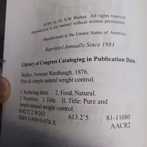 Weight control book by Norman W. Walker, inventor of the Norwalk Juice Press. Paperback.