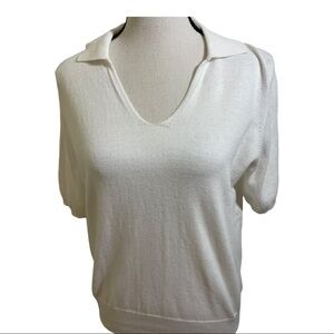 Pure collection new with tag collared short sleeve cotton cashmere blend v-neck sweater top. Size 8/10. White
