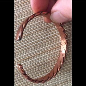 Pure copper bracelet from Argentina. Moldable, assumes the shape of your wrist. Beautiful rich color. Great condition. Health benefits of copper bracelets are well-known, so get yours while it lasts.