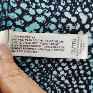 Pure energy blouse size 1X snakeskin multicolor print blue aqua black women's