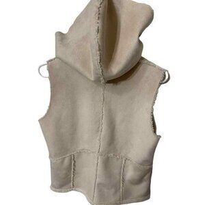 Pure simple natural Vest Womens Small Tan With Hood 100% polyester fuzzy lining