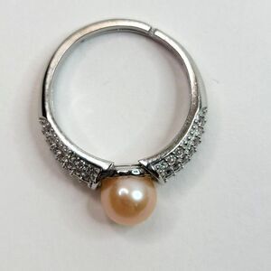 Pure Chic adjustable ring with an peach colored authentic freshwater pearl. 925 sterling silver with rhinestones.