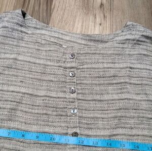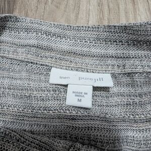 PureJill Women's Medium, 100% Linen, Gray Striped 3/4 Sleeve Henley Style Shirt