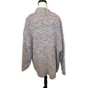 PureJill Women's RED GRAY WHITE Open Front Wool Blend Cardigan Pockets Size XL
