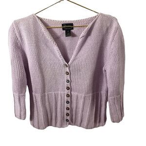Pure Lilac Button Down Handknit Cardigan Cotton Sweater Size S/M