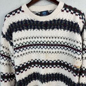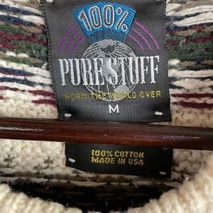 Love the design on this heavy cotton sweater by PureStuff. It measures 21 inches across the chest laying flat and 25 inches from shoulder to hem.