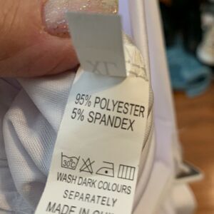 Purchased for myself but have never worn or even tried it on. Very stretchy from top to bottom. Elastic waist in the back but the front is also stretchy. Smoke free and pet free home