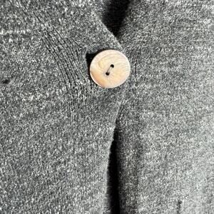 Excellent preowned condition. Gray heather long sleeve V-Neck tight knit cardigan sweater. Has one button closure on front. 100% cotton material. Approx. measurements: Shoulder to hem 29", pit to pit 22", sleeve from neck to sleeve hem 28". Size MP.