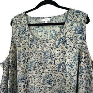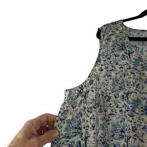 Purejill Sleeveless Maxi Dress Blue Cream Floral 100% Organic Cotton 3X Prairie