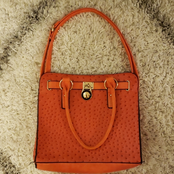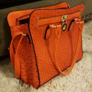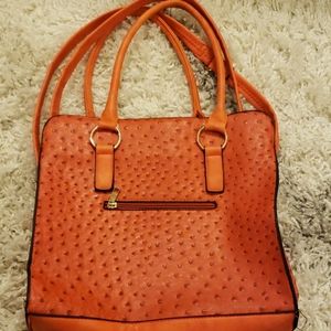 Large Faux gator print pocketbook. Very stylish and in good condition. Worn only a few times. Very large inside w/1 zipper compartment and 2 additional components inside. Also has a zipper compartment on the outside