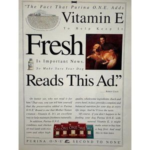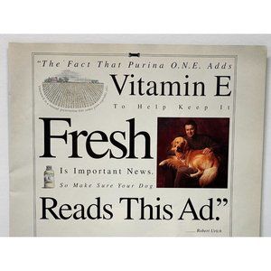 Purina One Dog Food Print Ad Vintage 1994 Pet Nutrition Second to None