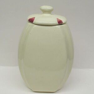 This really nice Fruit decorated FLOUR Canister and Lid were made by Purinton Pottery. This Canister is signed Purinton Slip Ware. It measures 8 3/4 inches to top of knob and is in very good condition with no chips or cracks. The hand-painted decoration is all very good. Be sure to search our other Purinton available.