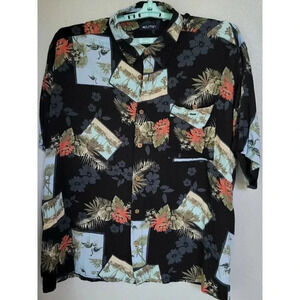Puritan 3X Men's Hawaiian Aloha Shirt Turquoise & Black Floral Paradise. Pre-owned but good condition