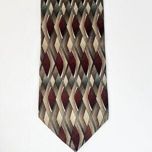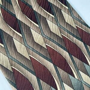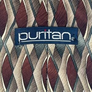 Puritan Abstract Print Mens Neck Tie Brown Tan Green 100% Silk