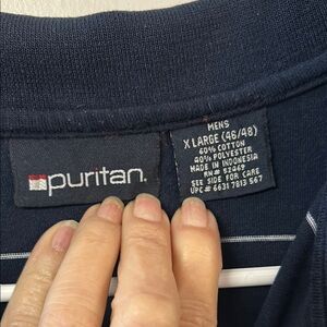 This Puritan polo shirt features a classic design with blue and white horizontal stripes, offering a versatile and stylish look. Crafted from comfortable materials, it's perfect for casual outings and everyday wear.
