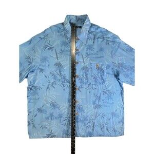 Puritan Hawaiian Shirt Men XL Shades Of Blue Floral Palm Trees Print