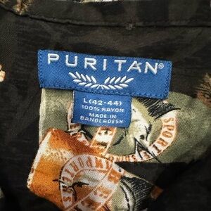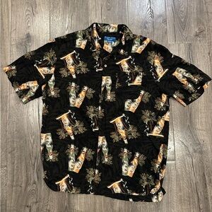 Puritan Men's Button Up Down Shirt Large 42-44 Hawaiian Shirt Cheers Beer Bottle