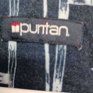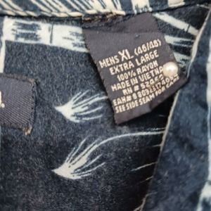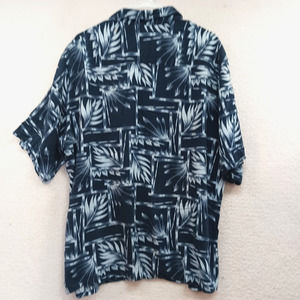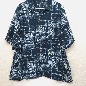 Puritan Mens Size XL Blue Short Sleeve Floral Hawaiian Button Down Shirt armpit to armpit 27.5" tiny stain no tears see photos for details