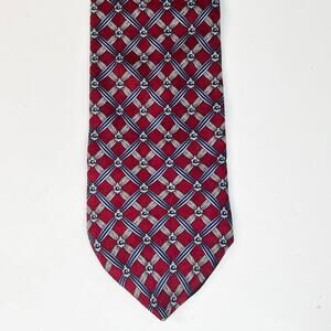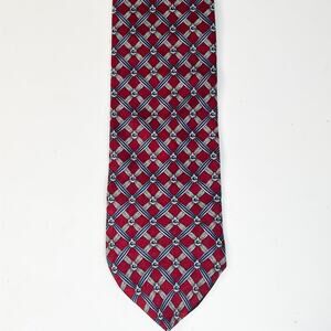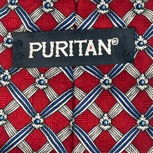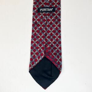 Puritan Print Mens Neck Tie Red Blue 100% Silk Made in USA