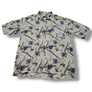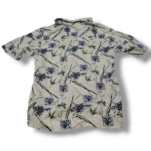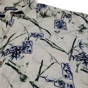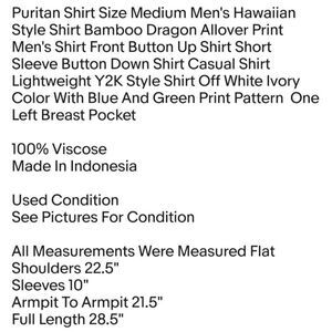 Puritan Shirt Size Medium Men's Hawaiian Style Shirt Bamboo Dragon Allover Print Men's Shirt Front Button Up Shirt Short Sleeve Button Down Shirt Casual Shirt Lightweight Y2K Style Shirt Off White Ivory Color With Blue And Green Print Pattern One Left Breast Pocket