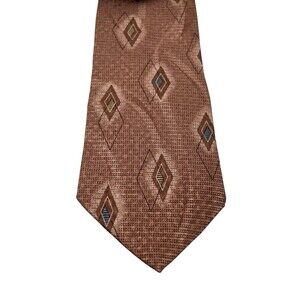 Puritan Tie Terracotta Geometric Diamond Pattern 100% Silk NWT