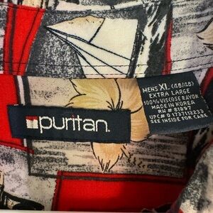 Puritan Vacation Shirt Men Size XL Button Front Red Lighthouse Sailing SS Collared