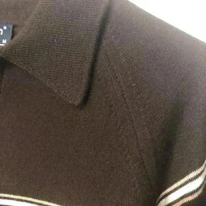 Never worn! New with tags Puritan Vintage Mens Brown Cream Long Sleeve Polo Knit Sweater Size Medium Made in USA.