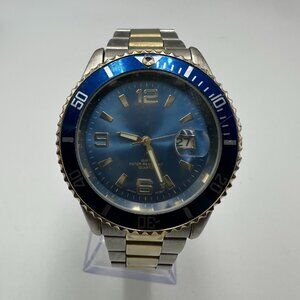 Puritan Watch Men Two Tone Silver Gold Blue Dial Date Window New Battery 8.25"