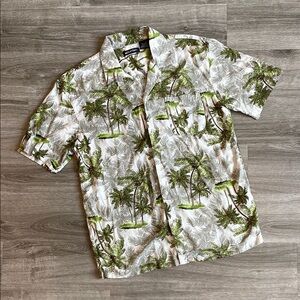 Puritan tropical Hawaiian print short sleeve button down shirt