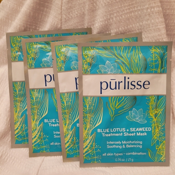 Purlisse Set Of 4 Blue Lotus+Seaweed Treatment Sheet Face Mask NEW