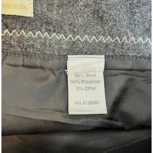 Mini skirt, 16" long, waist is 36". 60% wool, 34% polyester, 5% other. Very good preowned condition. Dry clean only.