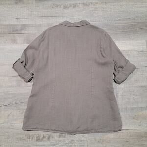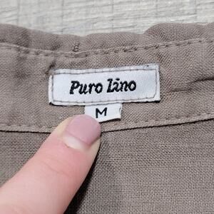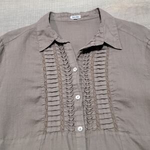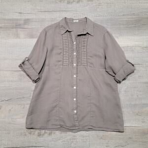 Puro Lino 100% Linen Button Up Roll Tab Shirt Pleated Pintuck Medium Boho Top