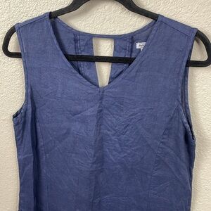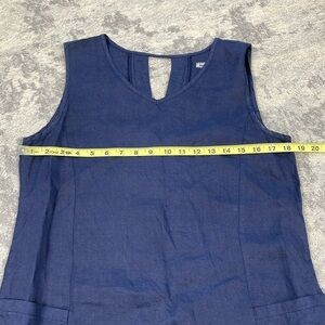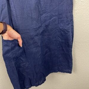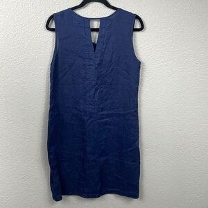 Puro Lino Blue Dark Chambray Minimalist Mini Shift Dress Linen Flax Sz M