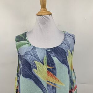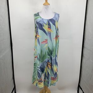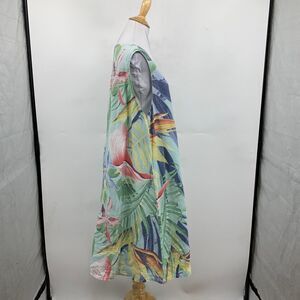 Puro Lino Dress Women XL Extra Large Multi Scoop Linen Tropical Made Italy Midi