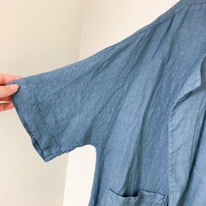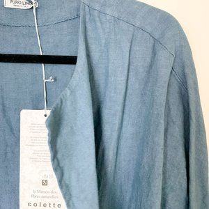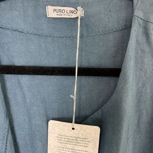 Puro Lino blue open linen duster cardigan with front pockets. New with tags. Made in Italy. Lagenlook style. Minor fabric imperfection on backside