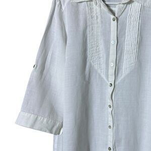 Puro Lino Womens Linen Button-Up Blouse Size XL Made In Italy Quiet Luxury White
