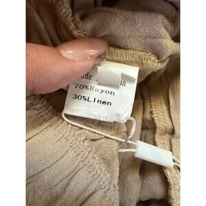 Purpearl Linen Pants in Tan, Wide-Leg, Elastic Waist, NWT