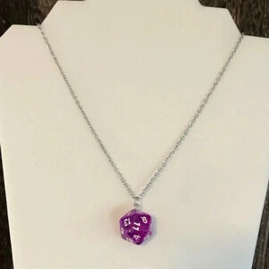 Purple 20 Sided Die D&D Dungeons and Dragons Stainless Steel Necklace