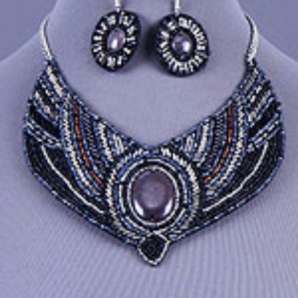Bead AccentDangle/DropUnique DesignNECKLACE ABOUT 6 in ACROSS EARRINGS 1.5 in LEXTENDER 2.5 in L. Length 11 inches