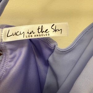 Lucy in the Sky lilac dress with front asymmetrical wrap. Perfect for spring!