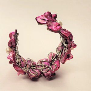 Purple Adjustable Cuff Bracelet with Pearl and Mother Of Pearl Shell Bangle -NEW