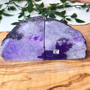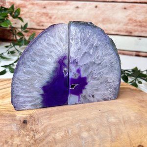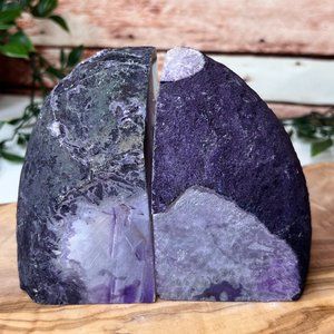 Purple Agate Crystal Bookend Pair - Geode Bookend - Boho Home Decor