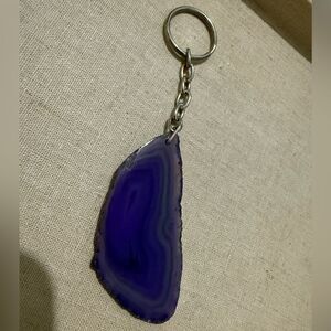 Purple Agate Slice Keychain with “S” Monogram – Natural Stone Initial Charm