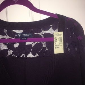 Deep Purple American Eagle Cardigan. Size Medium. Never been worn! Lace on shoulders and sleeves