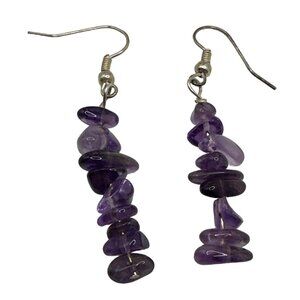 Purple Amethyst Chip Bead Earrings Dangle Drop