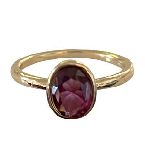 Elegant gold ring featuring a stunning purple gemstone. Perfect for any special occasion.