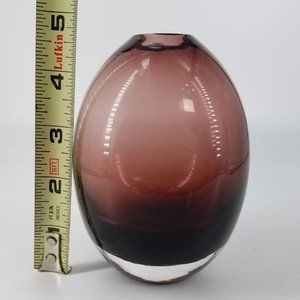 Purple Amethyst Hand Blown Art Glass Bud Vase Clear Bottom 4.50" x 2.75" MCM